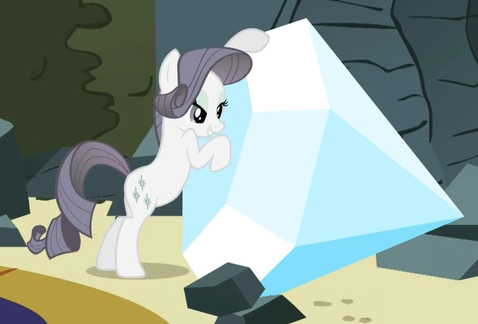 Then, we discover something interesting; some of the first truly great moments with Rarity revolving around her going crazy-- Discord makes her blinded by greed (she is supposed to be generous), so much so that she is willing to weigh down the party with a big boulder, that she thinks is a diamond...which poor Twilight helps her carry. There are a lot of funny lines involving Rarity and the rock, or as Rarity calls him, "Tom".